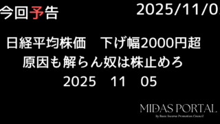 日経平均株価 下げ幅2000円超 原因も解らん奴は株止めろ 2025 11 05