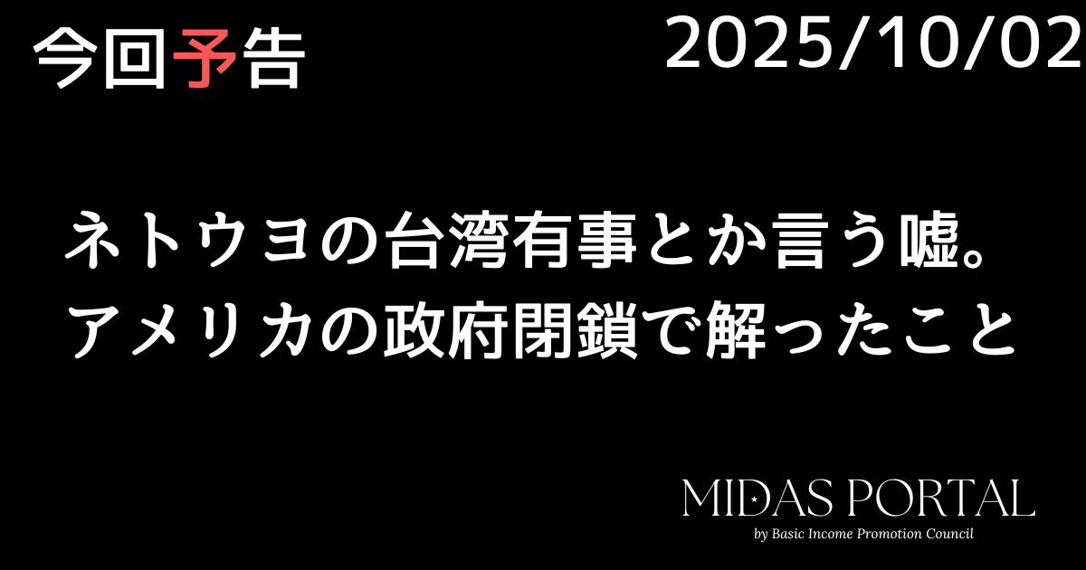 ネトウヨの台湾有事とか言う嘘。アメリカの政府閉鎖で解ったこと