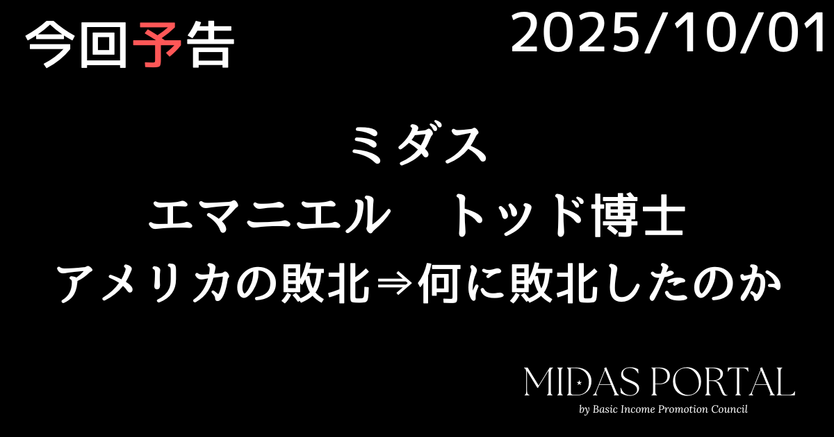 ショッピングリンク Yahoo!ショッピング 楽天市場 メルカリ ミダス エマニエル トッド博士 アメリカの敗北⇒何に敗北したのか 「全世界 “ガンダム” 総選挙 2025」来たる 「全世界 “ガンダム” 総選挙 2025」来たる 立憲共産党の力の見せどきだ。やってみる価値はありますぜ! 総選挙はこちら(ガンダムオフィシャルへ) 未分類 2025.10.16 ▶︎この動画を見てみる 公開日:2025/10/01
