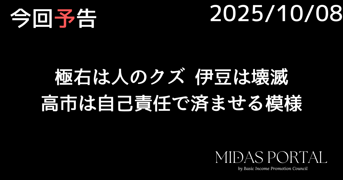 極右は人のクズ  伊豆は壊滅 高市は自己責任で済ませる模様
