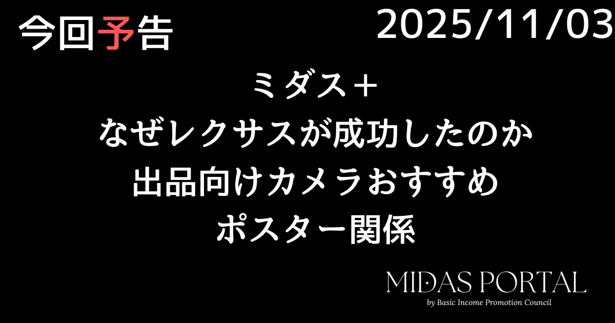 ショッピングリンク Yahoo!ショッピング 楽天市場 メルカリ ミダス+ なぜレクサスが成功したのか 出品向けカメラおすすめ ポスター関係 「全世界 “ガンダム” 総選挙 2025」来たる 「全世界 “ガンダム” 総選挙 2025」来たる 立憲共産党の力の見せどきだ。やってみる価値はありますぜ! 総選挙はこちら(ガンダムオフィシャルへ) 未分類 2025.11.08 ▶︎この動画を見てみる 公開日:2025/11/03