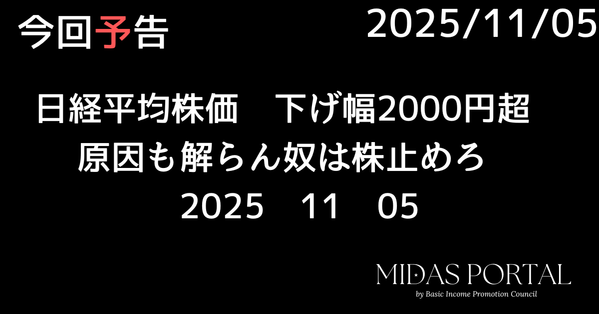 ショッピングリンク Yahoo!ショッピング 楽天市場 メルカリ 日経平均株価 下げ幅2000円超 原因も解らん奴は株止めろ 2025 11 05 「全世界 “ガンダム” 総選挙 2025」来たる 「全世界 “ガンダム” 総選挙 2025」来たる 立憲共産党の力の見せどきだ。やってみる価値はありますぜ! 総選挙はこちら(ガンダムオフィシャルへ) 未分類 2025.11.08 ▶︎この動画を見てみる 公開日:2025/11/05