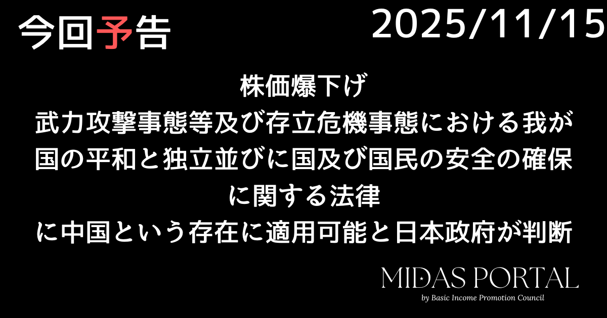 ショッピングリンク Yahoo!ショッピング 楽天市場 メルカリ 株価爆下げ 武力攻撃事態等及び存立危機事態における我が国の平和と独立並びに国及び国民の安全の確保に関する法律 に中国という存在に適用可能と日本政府が判断 「全世界 “ガンダム” 総選挙 2025」来たる 「全世界 “ガンダム” 総選挙 2025」来たる 立憲共産党の力の見せどきだ。やってみる価値はありますぜ! 総選挙はこちら(ガンダムオフィシャルへ) 未分類 2025.12.14 ▶︎この動画を見てみる 公開日:2025/11/15