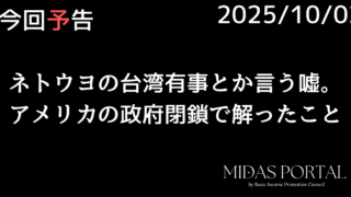 ネトウヨの台湾有事とか言う嘘。アメリカの政府閉鎖で解ったこと